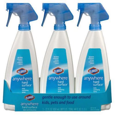 Make your home sparkle with Clorox Anywhere Hard Surface Daily Sanitizing Spray that kills 99. Clorox Anywhere Hard Surface Sanitizing Spray 32 Ounces. This sanitizing spray leaves behind no harmful residue and needs no wiping or rinsing.